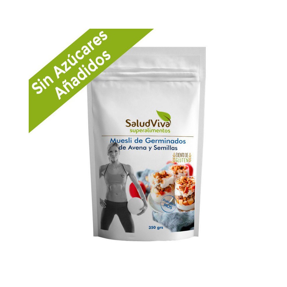 Este muesli con copos de avena germinada, es apto para celiacos, y para todas aquellas dietas libres de gluten. Una deliciosa mezcla que contiene semillas germinadas, frutas deshidratadas y prebiotico (Inulina de Achicoria)