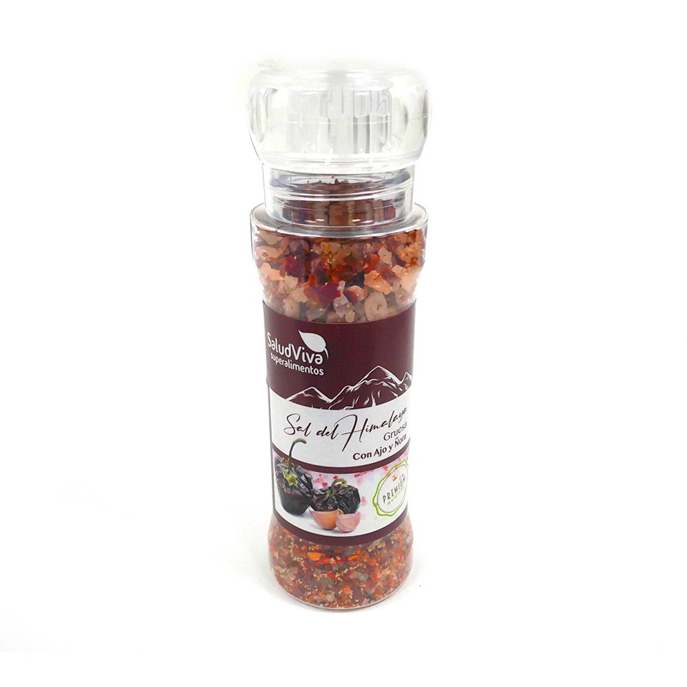 Sal rosa del Himalaya (gruesa), ñora granulada y ajo granulado.