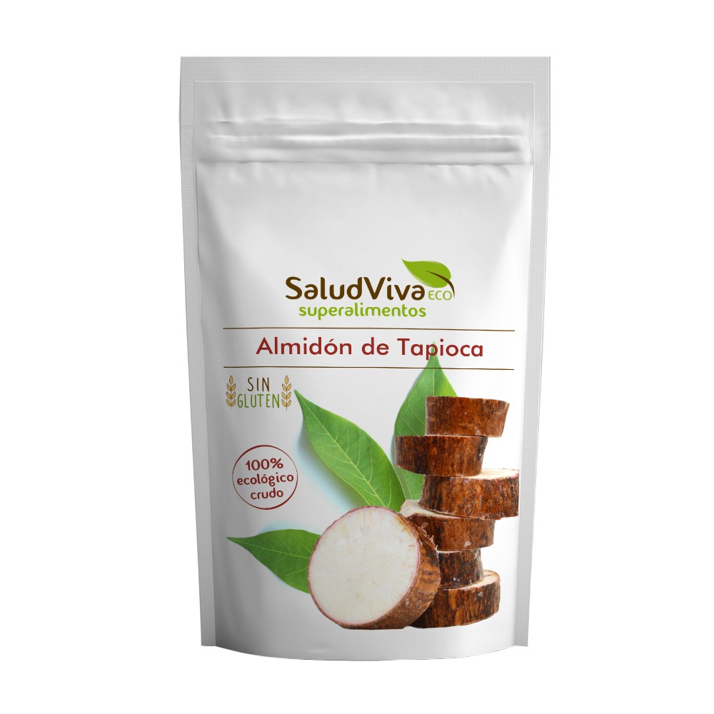 Este almidón se elabora a partir de la raíz de la yuca, el resultado es un polvo fino blanco similar alalmidón de maíz. La yuca aporta elasticidad a las masas, ayuda a añadir cuerpo a las recetas de masas sin gluten, y en muchos casos aporta esa textura crujiente y aireada característica del pan de verdad. También se utiliza para espesar líquidos, pudines, dulces, salsas, etc. Se puede usar para preparar una cremosa natilla y para tus helados sin lácteos.